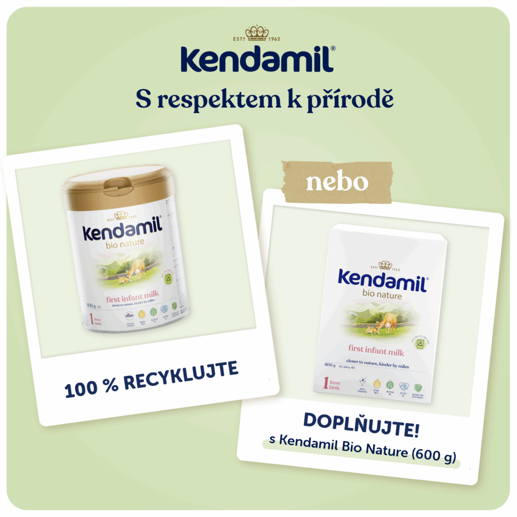 Důležité upozornění: Kojení je nejlepší způsob výživy kojenců. Počáteční mléko KENDAMIL BIO NATURE 1 je vhodné pro výživu kojenců od narození, nemohou-li být kojeni, a mělo by být užíváno pouze na radu nezávislých osob kvalifikovaných v lékařství, výživě nebo farmacii, nebo jiných odborníků odpovědných za péči o matku a dítě. Pečujte o hygienu ústní dutiny v období růstu prvních zoubků, především před spaním. Dodržujte pokyny pro přípravu, krmení a skladování, jinak ohrozíte zdraví kojence.