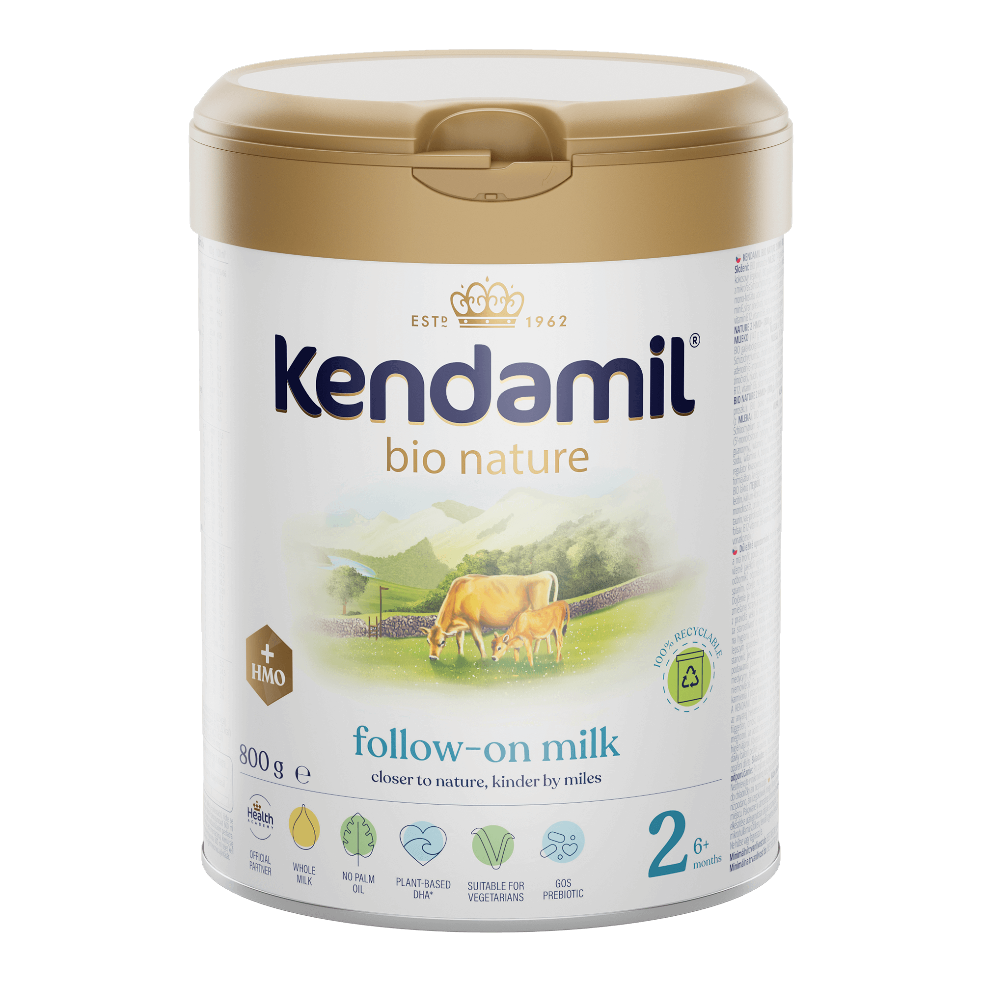Více než 60 let výzkumu a vývoje v každé kapce. Kendamil BIO Nature je prémiová kojenecká výživa z plnotučného mléka v BIO kvalitě, které je přirozeným zdrojem mléčného tuku. Obsahuje pečlivě vybrané složky, včetně HMO+ a oligosacharidů GOS a FOS. Receptura je inspirována složením mateřského mléka a neobsahuje palmový ani rybí olej. Certifikováno pro vegetariány.