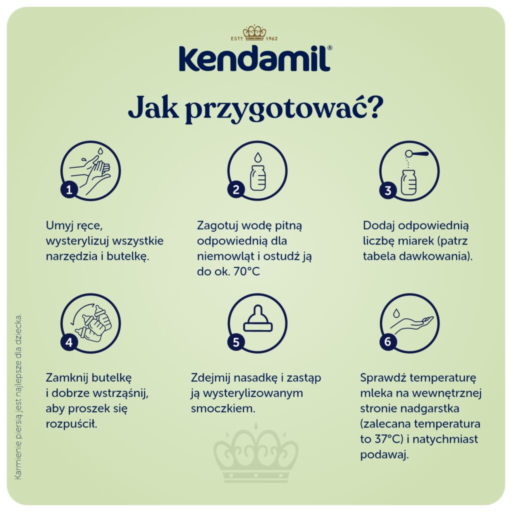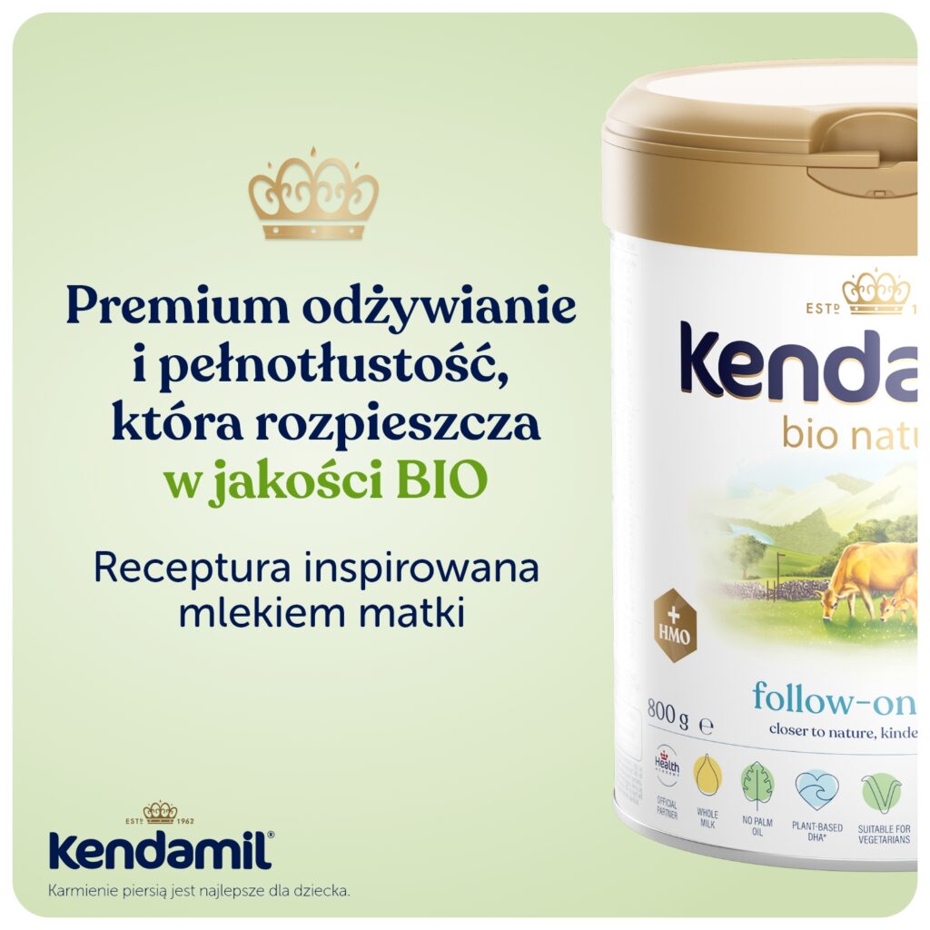 Ważna uwaga: Karmienie piersią jest najlepszym sposobem żywienia niemowląt. Mleko następne KENDAMIL BIO NATURE 2 HMO+ jest odpowiednie tylko dla niemowląt powyżej 6 miesiąca życia, powinno stanowić jedynie część zróżnicowanej diety i nie powinno być stosowany jako zamiennik mleka matki w ciągu pierwszych 6 miesięcy życia. Decyzja o rozpoczęciu podawania pokarmu, w tym jakiegokolwiek wyjątku od zasady 6. miesiąca życia, powinna być podjęta za radą niezależnych osób wykwalifikowanych w dziedzinie medycyny, żywienia, farmacji lub innych specjalistów odpowiedzialnych za opiekę nad matką i dzieckiem, w zależności od indywidualnego wzrostu i potrzeb rozwojowych niemowlęcia. Po spożyciu mleka przez niemowlę, zwłaszcza przed snem, zadbaj o higienę jego jamy ustnej. Postępuj zgodnie z instrukcjami dotyczącymi przygotowania, karmienia i przechowywania, w przeciwnym razie zagrozisz zdrowiu niemowlęcia.