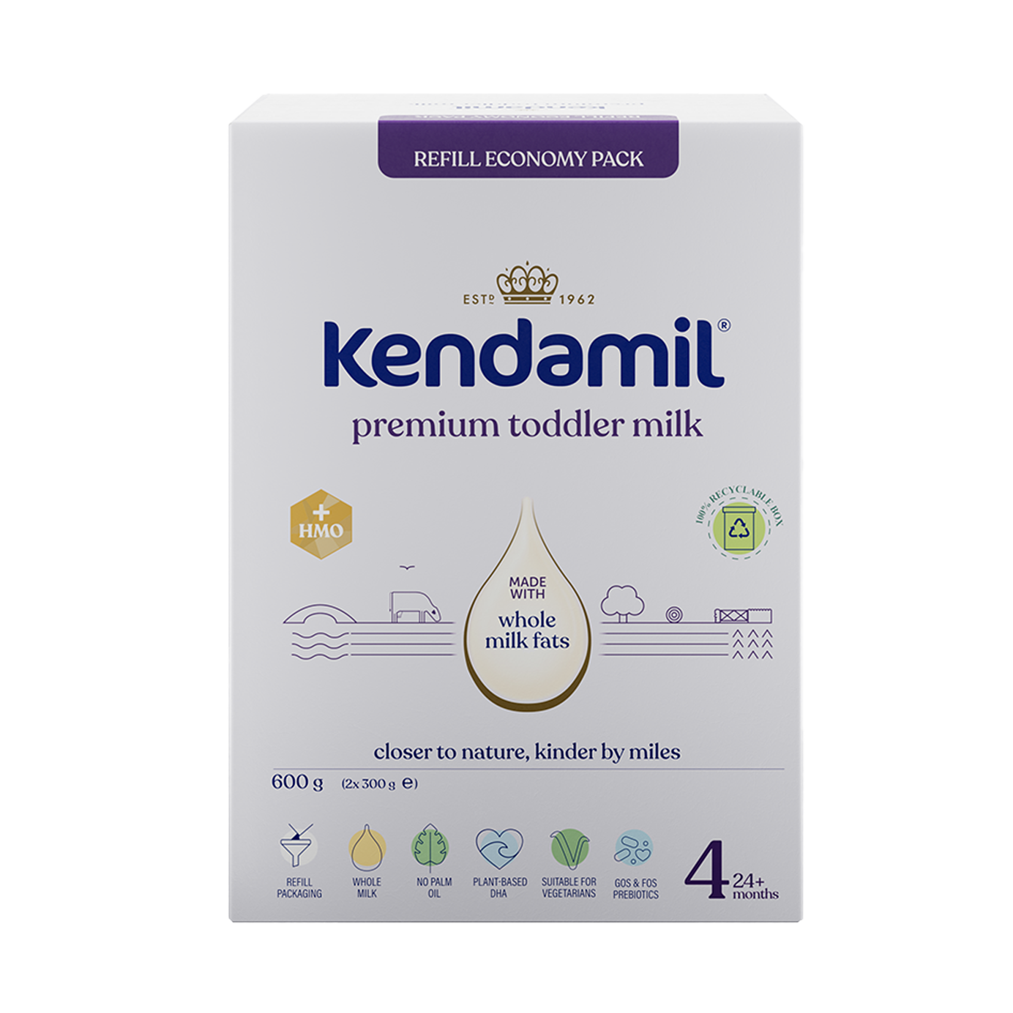 Více než 60 let výzkumu a vývoje v každé kapce. Kendamil Premium je prémiová kojenecká výživa z plnotučného mléka, které je přirozeným zdrojem mléčného tuku. Obsahuje pečlivě vybrané složky, včetně HMO+ a oligosacharidů GOS a FOS. Receptura je inspirována složením mateřského mléka a neobsahuje palmový ani rybí olej. Certifikováno pro vegetariány.